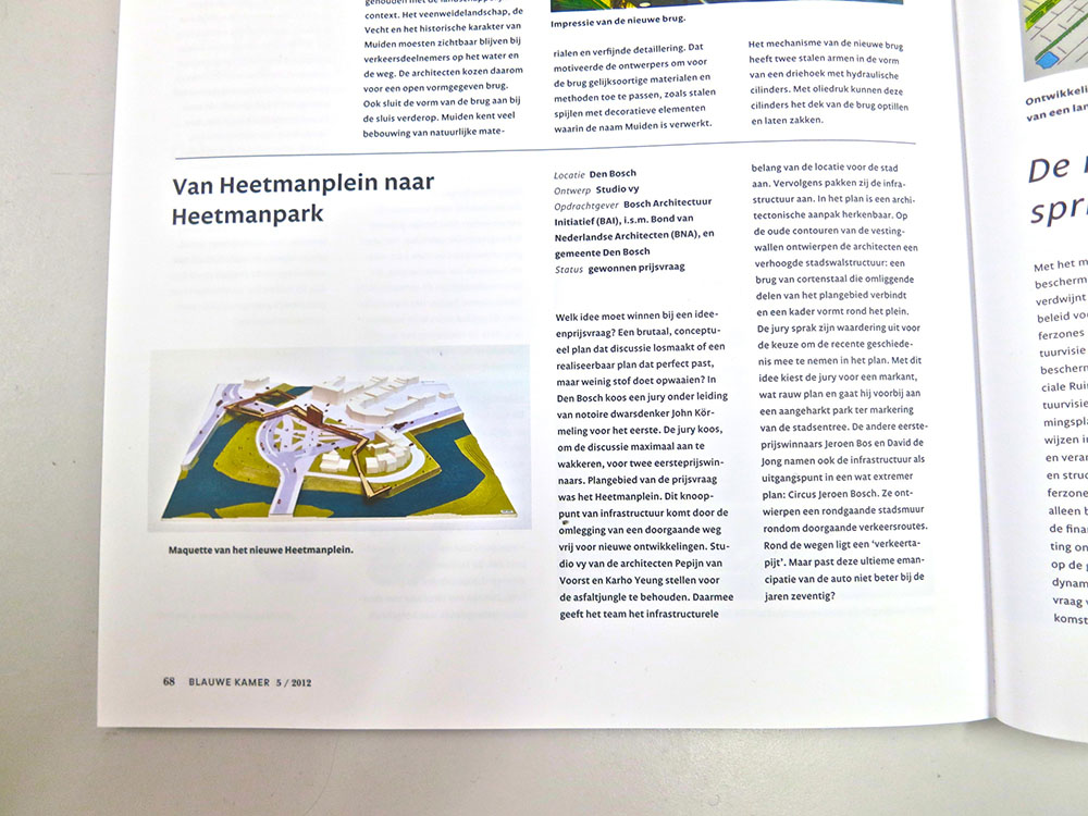 Het project 'Heetmanpark' is gepubliceerd in het tijdschrift de Blauwe Kamer nr 5. oktober 2012.